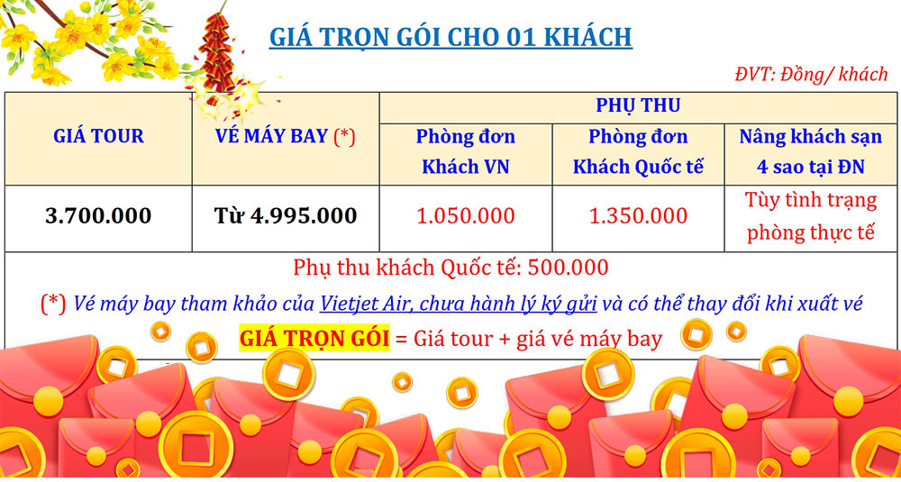 - Hủy tour sau khi đăng kí: 50% tổng tiền tour.