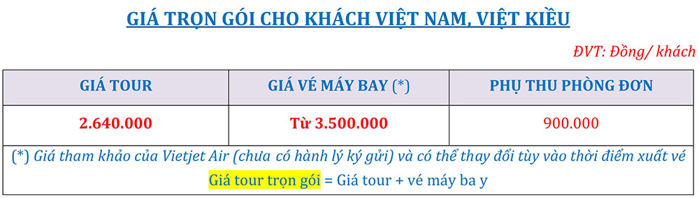 GIÁ TOUR TRỌN GÓI