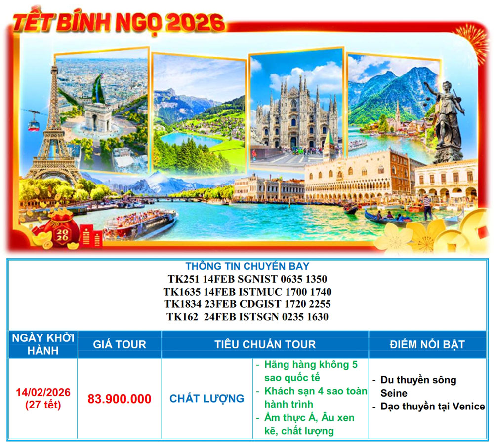 Chuyến bay dự kiến: TK 251 14FEB SGNIST 0635 1350// TK1635 14FEB ISTMUC 1700 1740