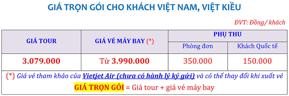 • Khách từ 70 tuổi trở lên, khi tham gia tour phải đảm bảo đủ sức khỏe và có thân nhân đi cùng.