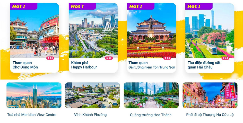 • Tham quan Quảng trường Hoa Thành nằm ở trung tâm thành phố Quảng Châu, là quảng trường đô thị lớn nhất của thành phố. Quảng trường có nhiều cây xanh, khung cảnh đẹp và rực rỡ ánh đèn vào ban đêm, là địa điểm lý tưởng để du khách dạo chơi, chụp ảnh và cảm nhận vẻ đẹp hiện đại, sôi động của thành phố Quảng Châu.