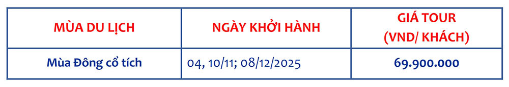 • Trẻ em từ 11 tuổi trở lên: bằng giá tour người lớn.