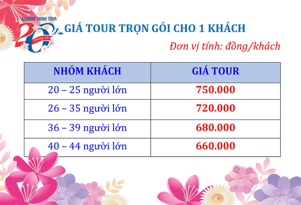 • Trẻ em dưới 5 tuổi: Miễn phí tour, các chi phí phát sinh gia đình tự chi trả và tự lo cho bé. 2 người lớn chỉ kèm 1 bé miễn phí, từ trẻ em thứ 2 trở đi tính 75% giá tour người lớn.