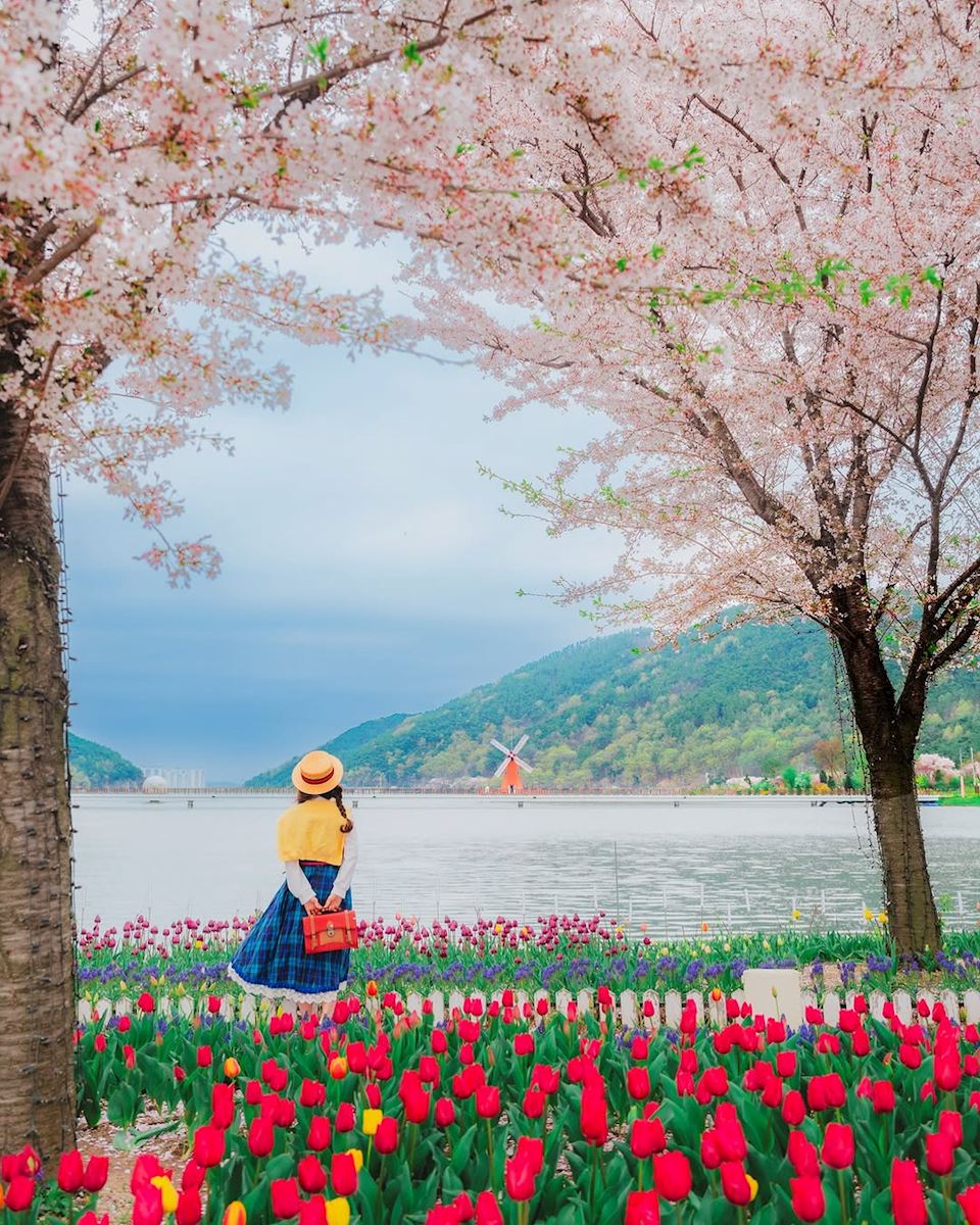 Du khách thường lựa chọn công viên Song Hae để chụp ảnh kỷ niệm, picnic nhẹ và tận hưởng lễ hội hoa xuân mang đậm văn hóa Hàn Quốc.
