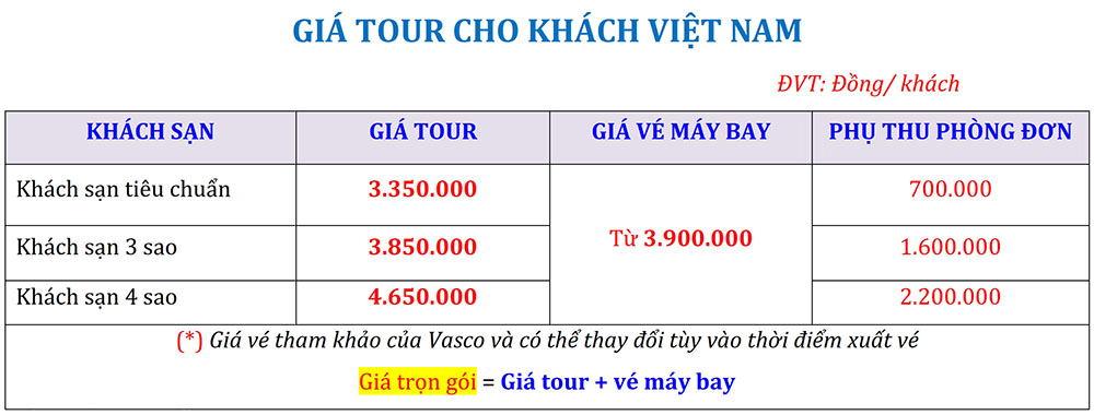 GIÁ TOUR TRỌN GÓI