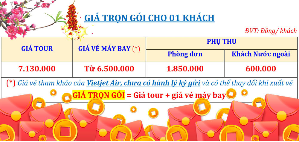 • Khách từ 70 tuổi trở lên, khi tham gia tour phải đảm bảo đủ sức khỏe và có thân nhân đi cùng.