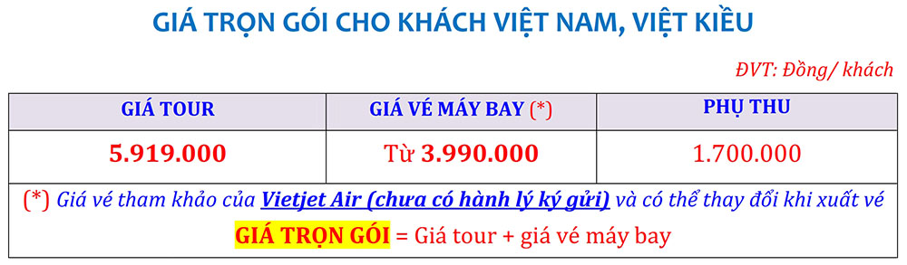• Trước ngày đi 07 ngày: 100% chi phí tour.