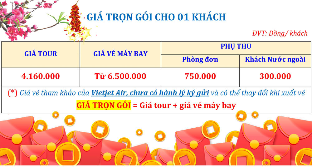 • Khách từ 70 tuổi trở lên, khi tham gia tour phải đảm bảo đủ sức khỏe và có thân nhân đi cùng.