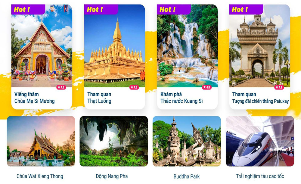 • Tháp Thạt Luổng – Một trong những công trình kiến trúc mang màu sắc đặc trưng nhất mang tính tôn gáo sâu sắc. Biểu tượng cho trí tuệ, óc sáng tạo và tinh thần đoàn kết của người dân Lào.