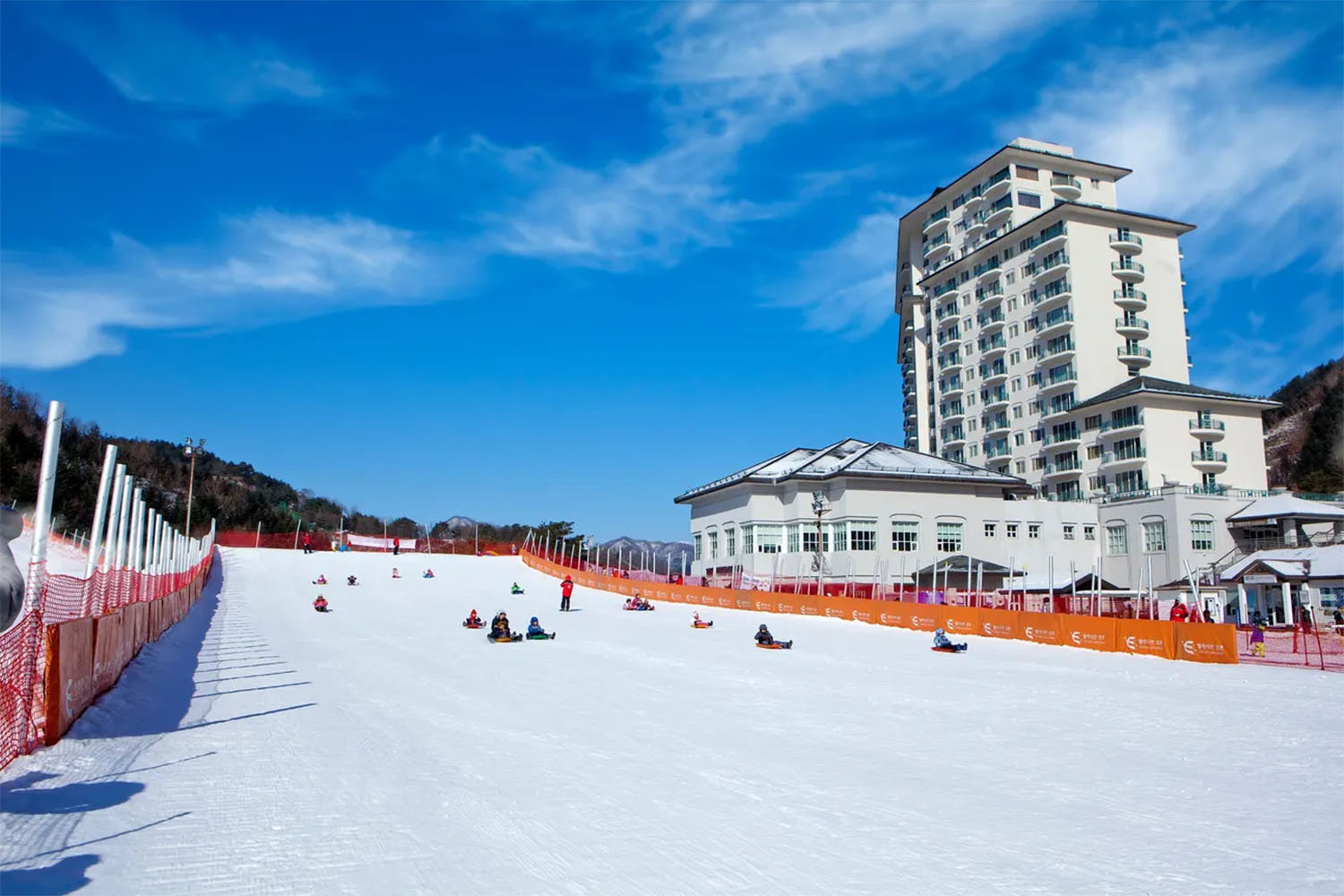 ❄ Khu trượt tuyết Elysian Gangchon - tổ hợp giải trí nằm trong khung cảnh hùng vĩ của núi rừng Gangwondo. Tại đây, quý khách có thể hòa mình vào thiên nhiên phủ tuyết trắng, lưu giữ khoảnh khắc mùa đông và trải nghiệm trượt tuyết trên đường trượt cao hơn 50m. Dưới sự hướng dẫn của Hướng dẫn viên, quý khách sẽ được làm quen với bộ môn này qua máng trượt hoặc gậy trượt (chi phí thuê trang phục và dụng cụ trượt tuyết tự túc, khoảng 1.900.000 VNĐ).