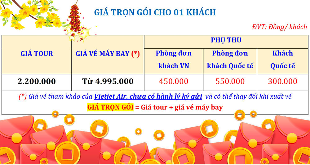- Hủy tour sau khi đăng kí: 50% tổng tiền tour.