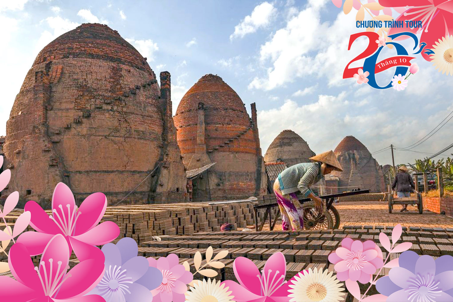 Quý khách “check in” và bắt đầu đạp xe trên đường làng, đi khám phá Vương Quốc Đỏ, tìm hiểu về nghề gốm đỏ Vĩnh Long. Trở lại tàu, trên đường đi tàu sẽ đi qua các con kênh rạch nổi tiếng: Kênh Mỹ An, Rạch Hòa Tịnh, Rạch Long Hồ.