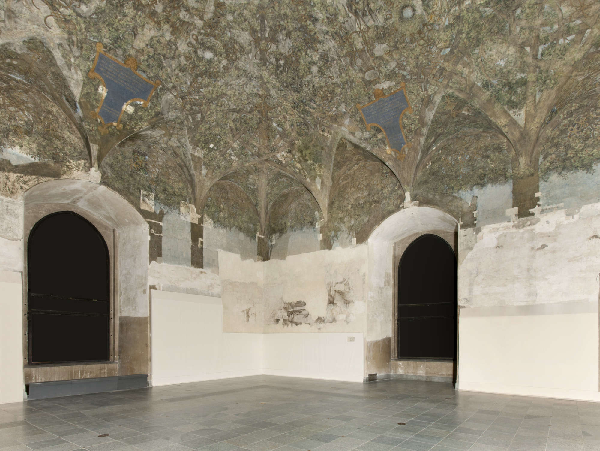 Nhắc đến những điểm tham quan bên trong lâu đài Sforzesco, không thể bỏ qua Sala delle Asse, căn phòng do chính Leonardo da Vinci trang trí. Những bức bích họa mô phỏng rừng cây đan xen tạo cảm giác như bước vào không gian nghệ thuật sống động.
