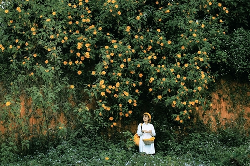 Để bức ảnh thêm nổi bật giữa mùa hoa dã quỳ, bạn nên chọn trang phục có màu trắng, be hoặc pastel. Một chiếc váy maxi nhẹ nhàng hay áo len vintage sẽ giúp bạn hòa mình vào không gian vàng rực. Khi chụp ảnh, nên chọn góc ngược sáng, hoặc tạo dáng giữa lối hoa để có được khung hình tự nhiên nhất.