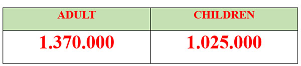 - Children above 12 years old: apply the same price as an adult